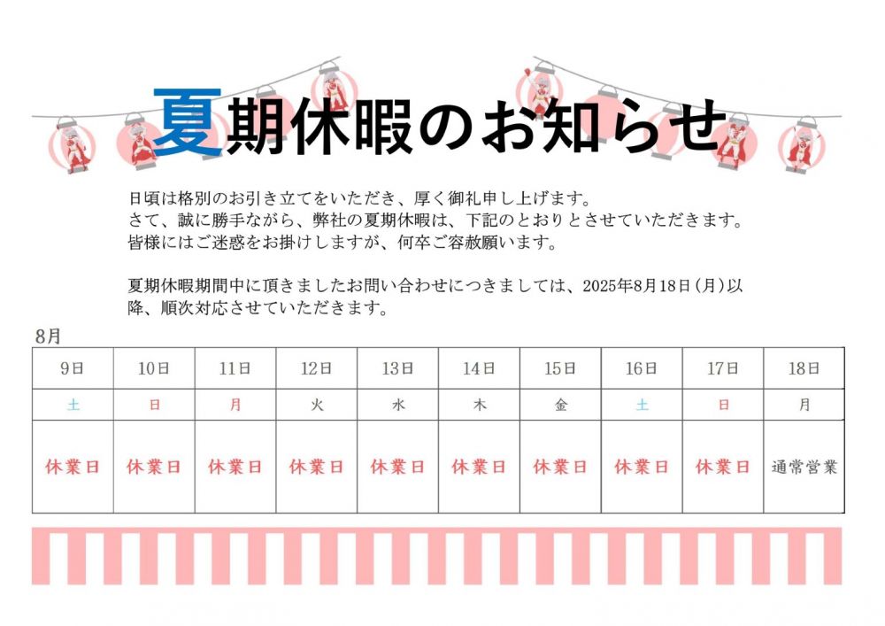 夏期休暇のお知らせ